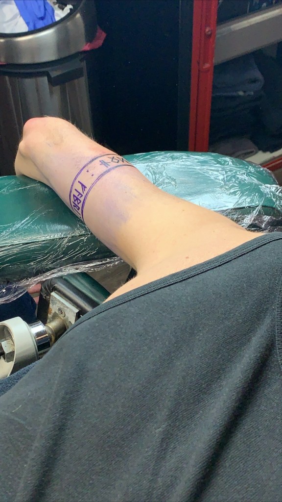 Maart: Papa A liet zijn James Tattoo zetten. Het was ff een gedoe maar toen stond die er erg mooi op.