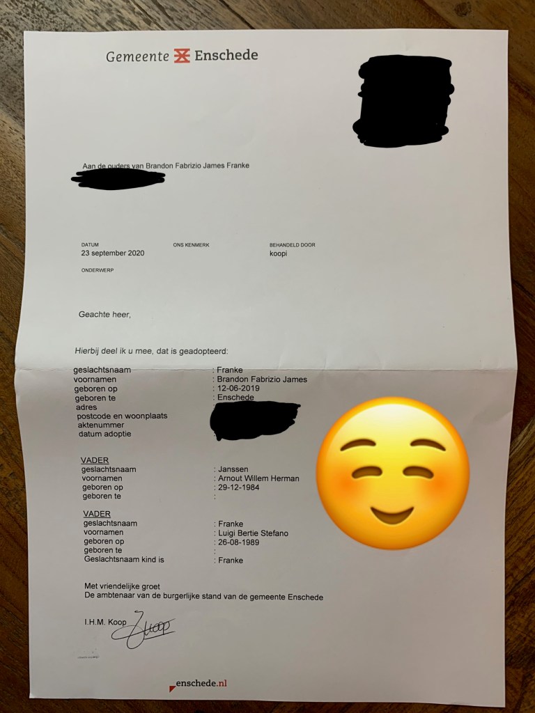 Daarnaast kregen wij in september dan ook EINDELIJK het vrolijke bericht dat onze rechtszaak mbt de adoptie van James helemaal rond was, dus na heel lang wachten, fouten van de rechtbank, gezeur met de raad hadden we dan eindelijk dit mooie papiertje: